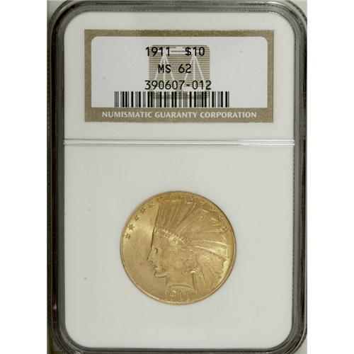 1911 $10 MS62 NGC. A lustrous apricot-tinged example t