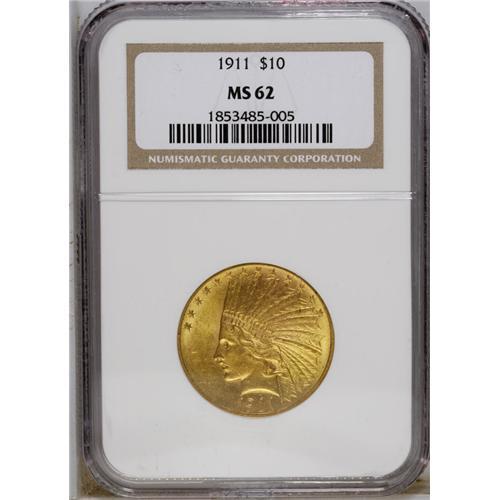 <B>1911 $10 MS62 NGC.</B></I> A well struck and softly lustrous representative of this early Saint-Gaudens eagle. A handful of abrasions in the fields and on the portrait preclude Select status.<BR><BR><b>Shipping:</b> Coin/Currency (<a target="_blank" href="http://www.heritageauctions.com/common/shipping.php">view shipping information</a>)