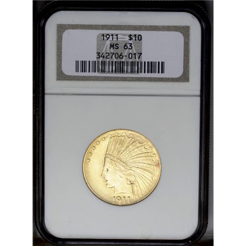 1911 $10 MS63 NGC. Select and well-defined with nicely