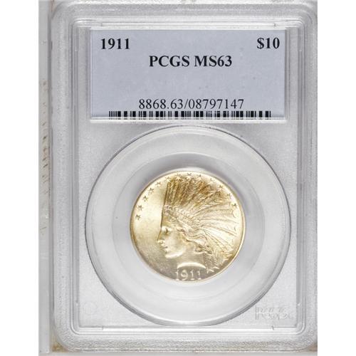 1911 $10 MS63 PCGS. A nicely struck piece with brassy