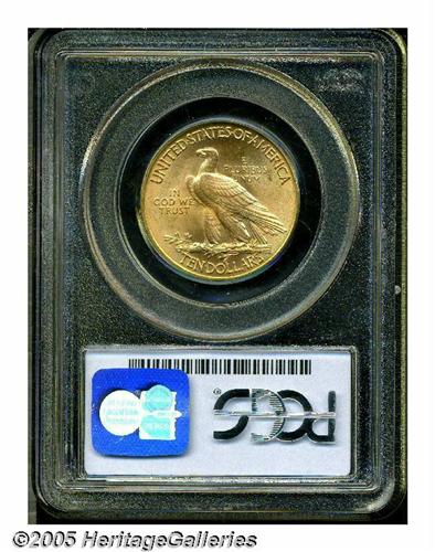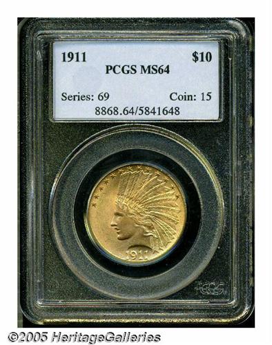 <B>1911<$10> MS64 PCGS.</B></I> Lovely mint-green and red-orange coloration adorns the bright, matte-like surfaces. Well struck and lustrous, with a few minute marks that seem minimal for a near-Gem.