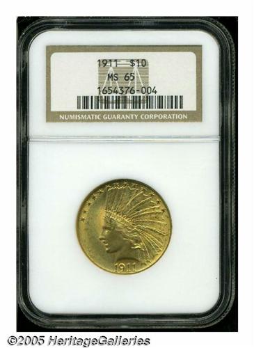 1911 $10 MS65 NGC. Frosty in texture, the origina