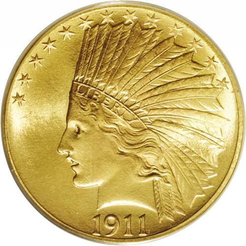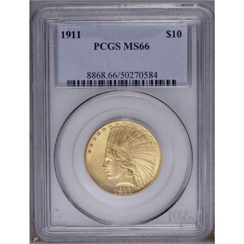 1911 $10 MS66 PCGS. Bright, satiny luster ripples over 1911[$10] MS66 PCGS.
