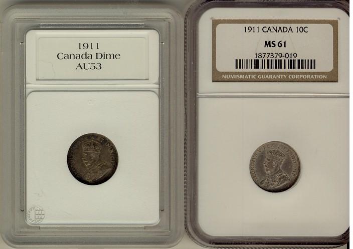1911 10¢ NGC MS61 & uncertified AU issue.
