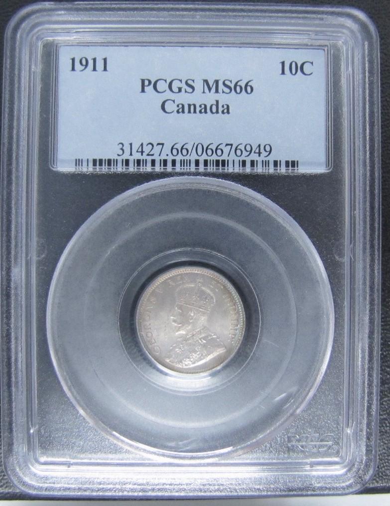 1911 10¢ PCGS MS66. Gem fields and lustre.