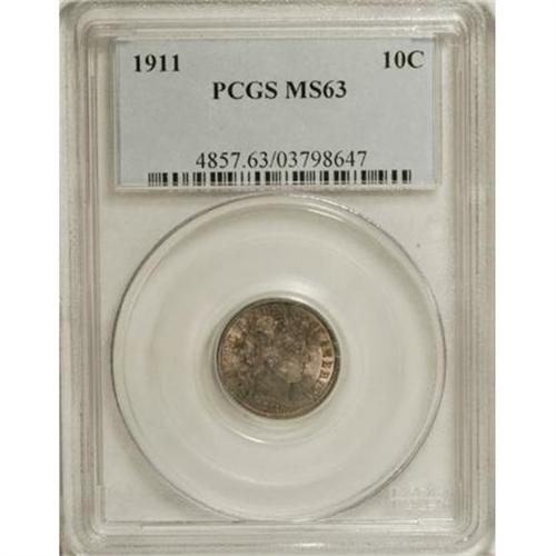 1911 10C MS63 PCGS. PCGS Population (177/390). NGC