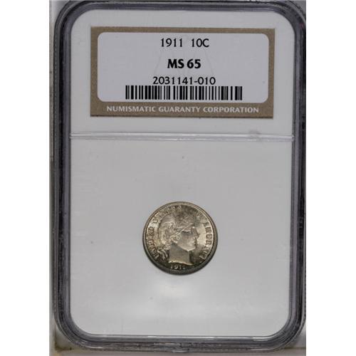 <B>1911<10C> MS65 NGC.</B></I> Lustrous surfaces show light apple-green and golden-red color in localized areas. A few minute marks are noted on Liberty's cheek. NGC has graded 56 coins finer (6/06).<BR><I>From The Belle Glade Collection.</B></I>