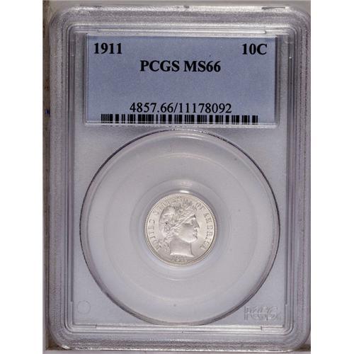 1911 10C MS66 PCGS. This Premium Gem is sharply struck 1911[10C] MS66 PCGS.