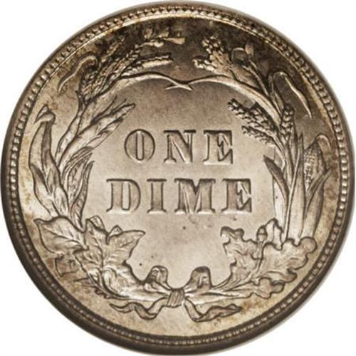 <B>1911 10C MS67 NGC.</B></I> Honey-gold peripheries encompass the faintly patinated aquamarine and lilac centers. This exceptionally lustrous silver type coin has immaculate fields, and the strike is sharp save for minor softness on the upper right cereal grains. Census: 11 in 67, 2 finer (10/07).<BR><BR><B>Coin Engraver:</B> Charles E. Barber<BR><BR><b>Shipping:</b> Coins & Currency (<a target="_blank" href="http://www.heritageauctions.com/common/shipping.php">view shipping information</a>)