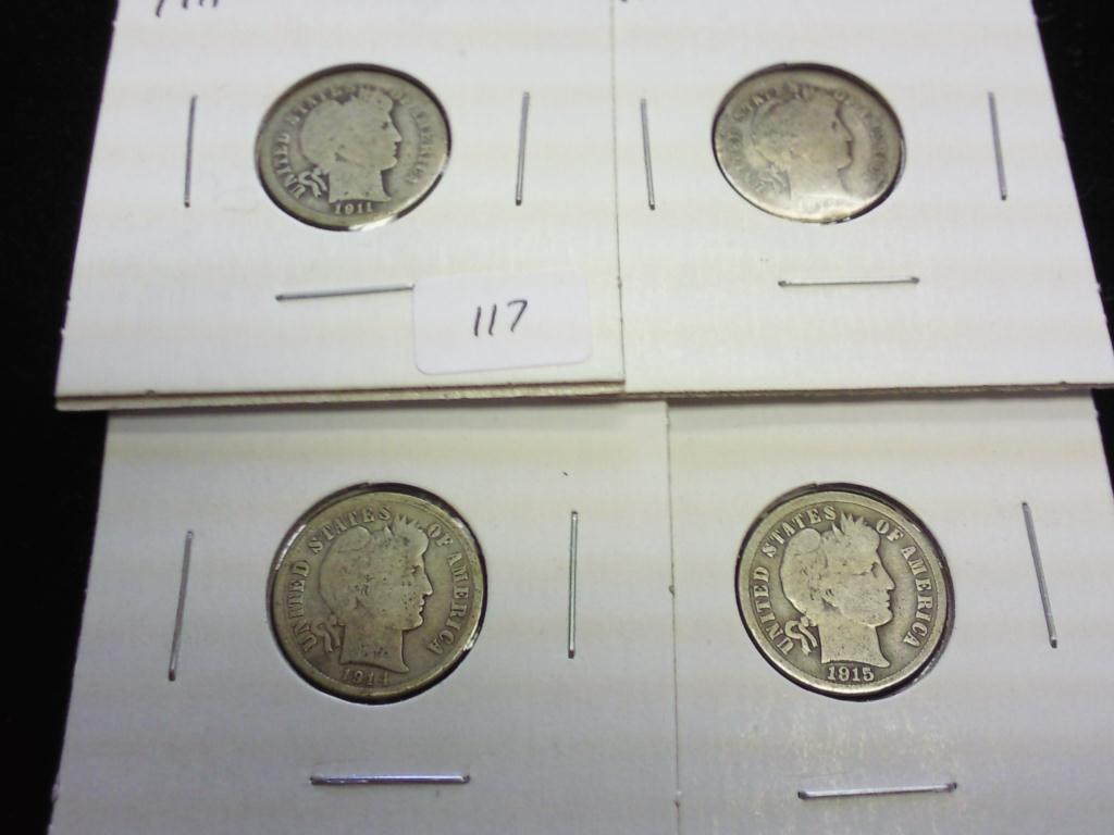 1911,12,14-D & 15 BARBER DIMES