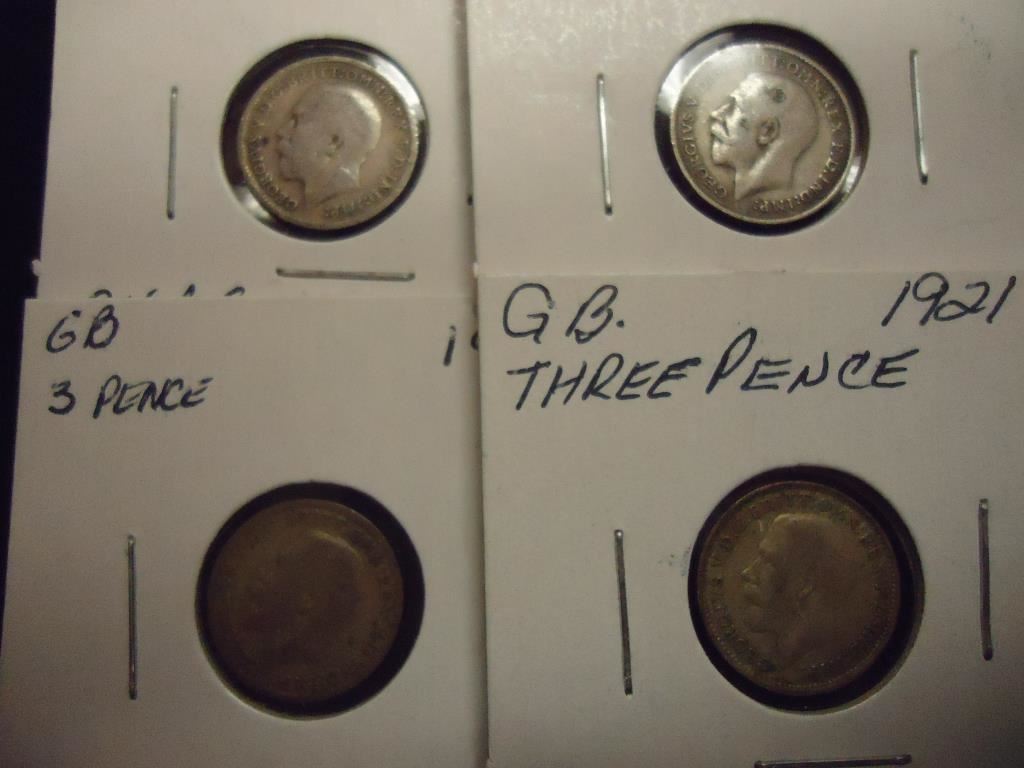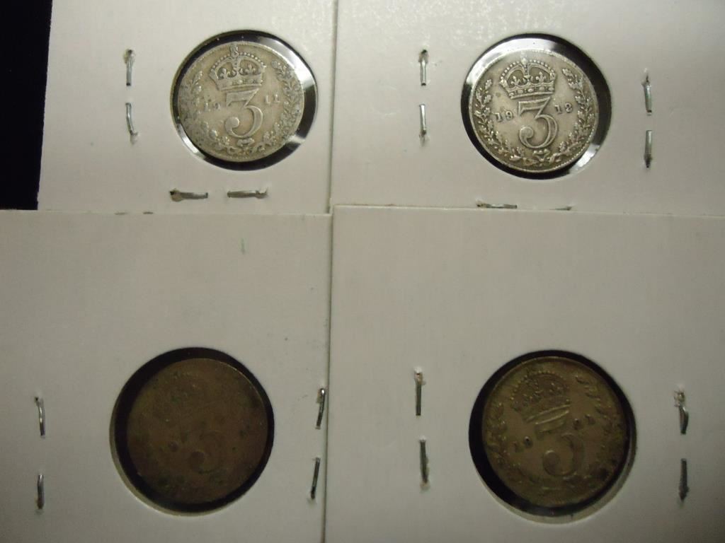 1911,12,20 & 1921 GREAT BRITAIN SILVER 3 PENCE