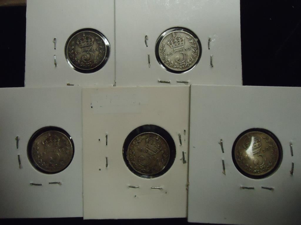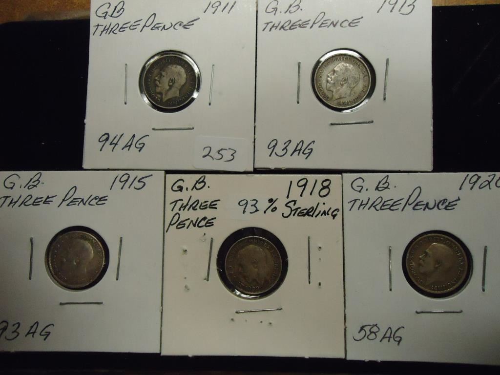 1911,13,15,18 & 1920 GREAT BRITAIN SILVER 3 PENCE