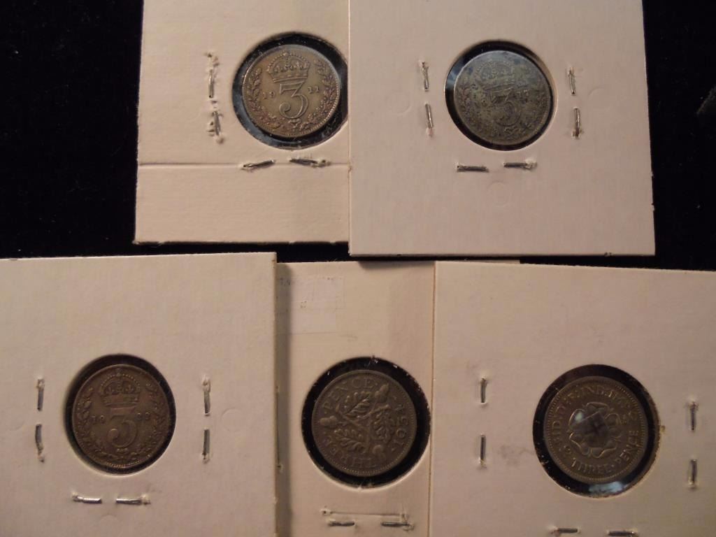 1911,17,22,34 & 40 GREAT BRITAIN SILVER 3 PENCE