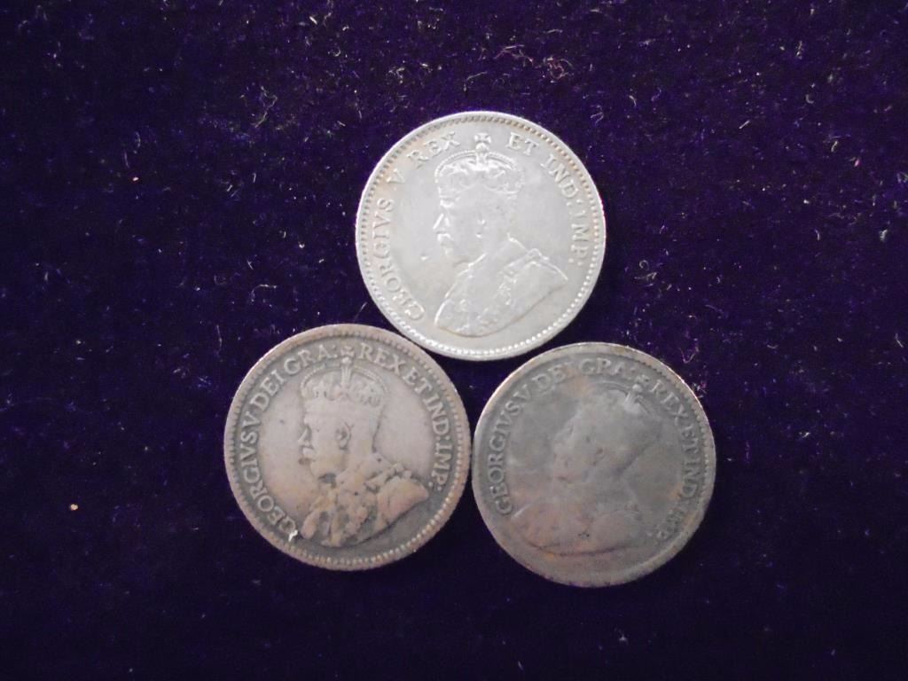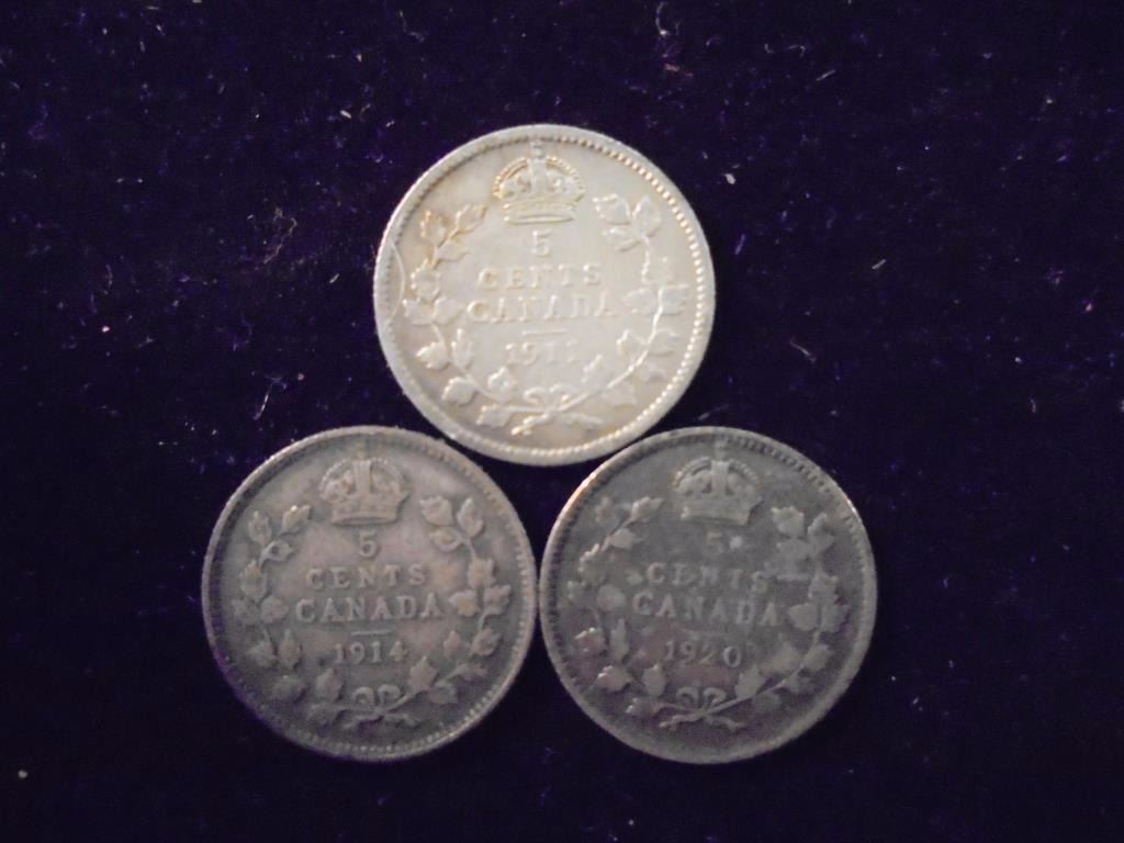 1911,1914 & 1920 CANADA SILVER 5 CENTS