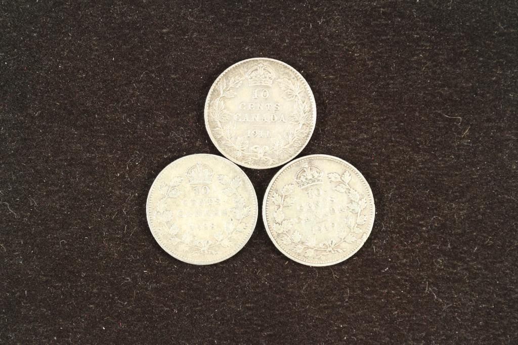 1911, 1918 & 1919 CANADA SILVER 10 CENTS