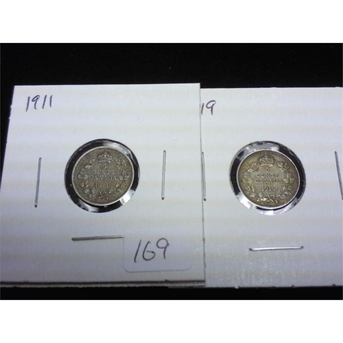 1911 & 1919 CANADA SILVER FIVE CENTS