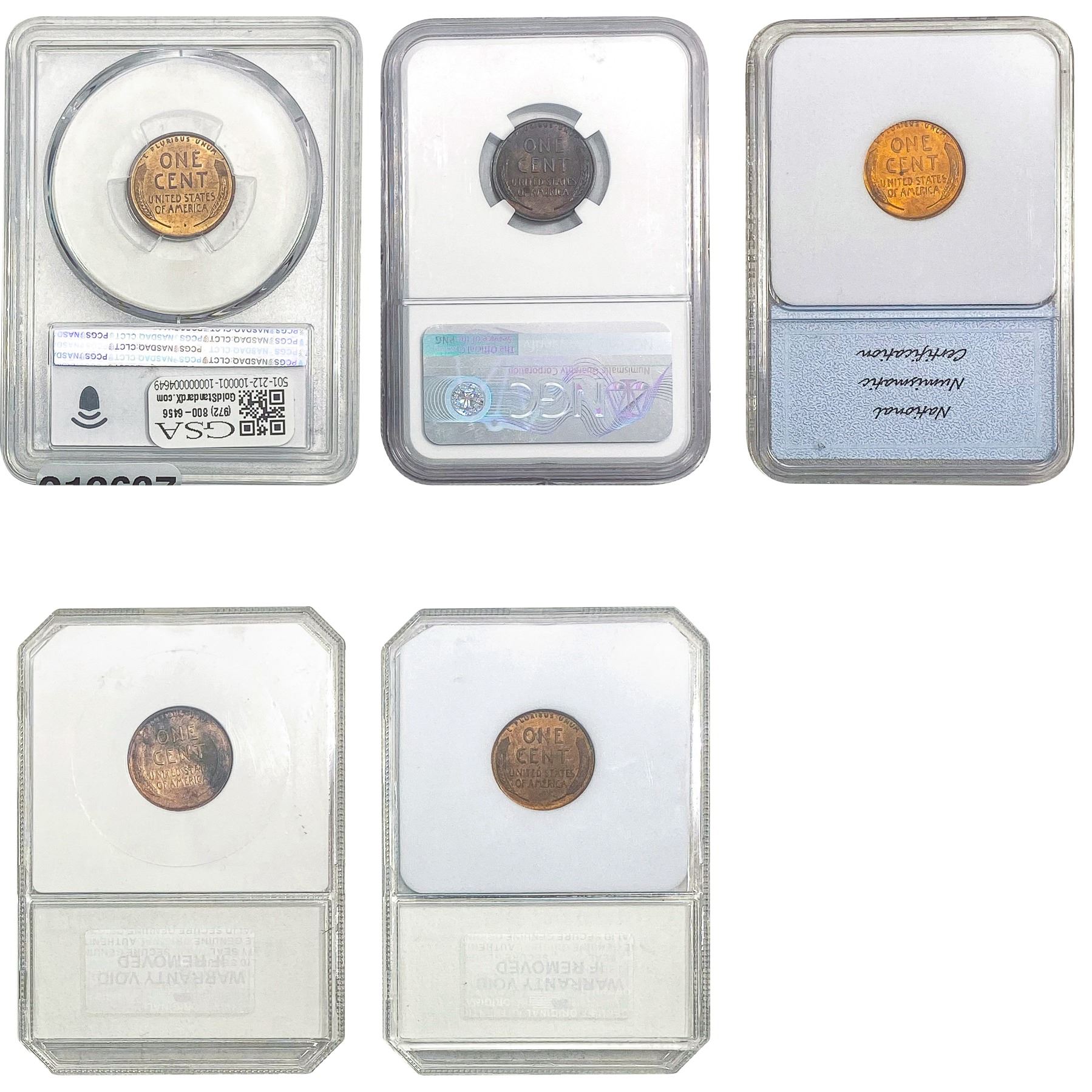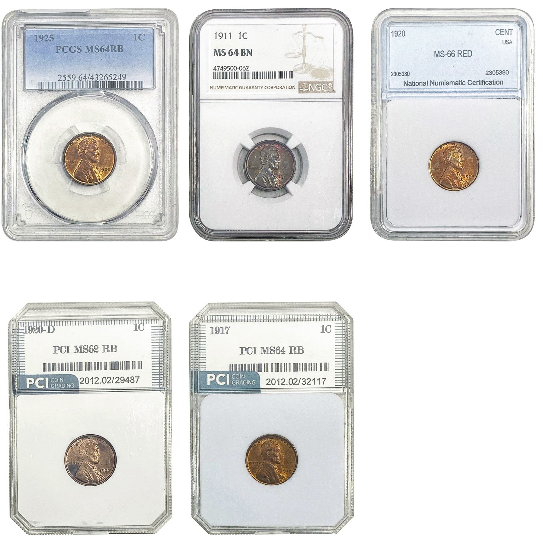 1911-1925 HIGH GRADE Better Date Lincoln Wheat Cent Lot [5 Coins] PCGS/PCI/NGC MS62-66