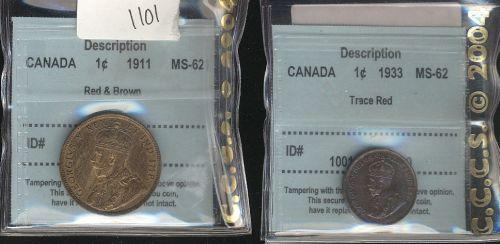 1911, 1933 both coins are CCCS graded MS-62. Coins have some red lustre.