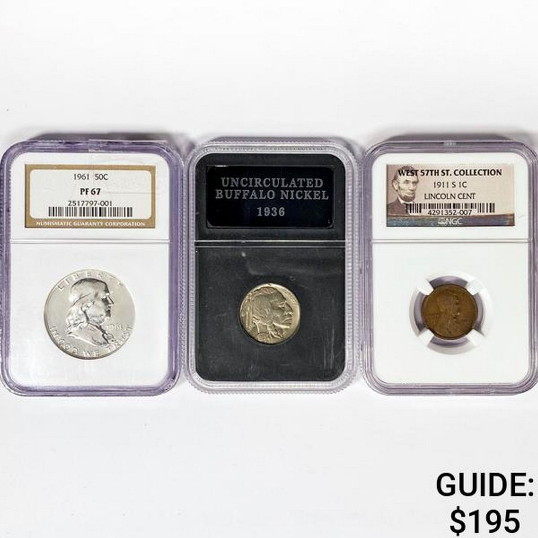 1911-1961 SET (3) 1 1C, 1 5C, 1 50C NGC