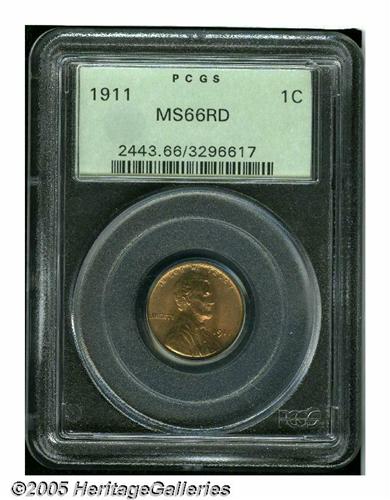 <B>1911<1C> MS66 Red PCGS.</B></I> Brick-red color graces this lustrous and attractive premium Gem. A tiny tick on the forehead and a pair of wispy imperfections on the shoulder limit the grade but not the exceptional eye appeal. Certified in a green label holder. Population: 65 in 66, 8 finer (6/05).<BR><I>From The William Bickel Collection, Part One.</B></I>