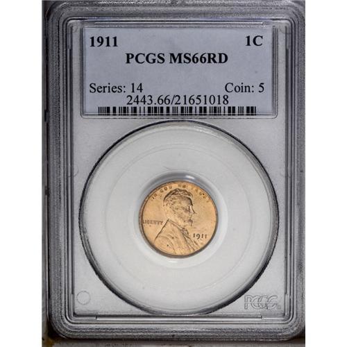 <B>1911<1C> MS66 Red PCGS.</B></I> Coppery-red surfaces exhibit nice luster, some light muting on the reverse, and several faint carbon flecks, also on the reverse. The design elements are nicely struck up. Population: 68 in 66, 8 finer (3/06).<BR><I>From The Kendall Marie #4 All-Time Finest PCGS Registry of Lincoln Cents with Varieties, Circulation Strikes, 1909-1958.</B></I> <BR><BR><B>Important notice:</B> Heritage usually auctions material at the rate of 200-250 lots per hour. On some occasions eBay Live bid software or the Internet may not be able to keep up with the pace of the auction. We recommend placing a realistic absentee bid now as insurance to avoid disappointment. Occasionally the auctioneer may eliminate or reject an eBay Live bid, and the auctioneer may also reopen a lot after the close of the eBay live bidding (usually because we missed an audience bid), and may reject your bid even if it shows you as the winning bidder. By bidding via eBay Live, you agree that Heritage may award the lot to another bidder at its sole discretion under the circumstances described above or any other reasonable circumstances. Since eBay bids are not shown to us until we open the lot on the floor, we treat those bids just like floor bids. In most cases the floor responds before the eBay bid is presented to us, due to Internet lag time, so for consistency we have made it a policy that floor bids are always considered first over tie eBay live bids. Also please note that all Heritage lots purchased through eBay Live carry a 20% Buyer's Premium. Please make sure you read the Terms and Conditions before you bid. This lot is being auctioned in conjunction with a live floor auction by Heritage Galleries & Auctioneers. All final auction and invoice information will be supplied by Heritage Galleries & Auctioneers, and all other information should be considered preliminary. Lot:472 <BR><BR><B>Winning Notification and Billing:</B> After the FINAL session in this auction is complete, Heritage will send e-mail and snail mail invoices. This process normally takes several days. All final auction and invoice information will be supplied by Heritage Galleries & Auctioneers, and all other information should be considered preliminary. <BR><BR>This auction will be conducted on a live auction floor and over the Internet through eBay Live. If you choose to place an absentee bid, please take a moment to <font color='#0000ff'><u><a href='http://pages.ebay.com/liveauctions/help/before/laabsentee.html'>learn how eBay Live absentee bidding works</a></u></font><font color='#000000'>