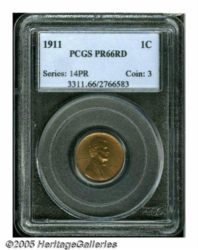 <B>1911<1C> PR66 Red PCGS.</B></I> The pristine surfaces are intricately detailed with vibrant pinkish-tan and sea-green centers and warm golden-orange peripheral accents. A few isolated and minuscule flecks of carbon would not even be mentioned on a lesser grade specimen. Population: 10 in 66 Red, 0 finer at either service (6/05).<BR><I>From The William Bickel Collection, Part One.</B></I>