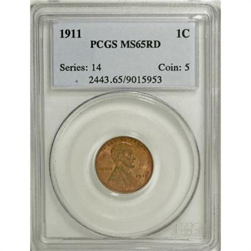 <B>1911 1C MS65 Red PCGS.</B></I> PCGS Population (171/84). NGC Census: (44/17). Mintage: 101,177,784. Numismedia Wsl. Price for NGC/PCGS coin in MS65: $300. (#2443)<BR><BR><B>Coin Engraver:</B> Victor D. Brenner<BR><BR><b>Shipping:</b> Coins & Currency (<a target="_blank" href="http://www.heritageauctions.com/common/shipping.php">view shipping information</a>)