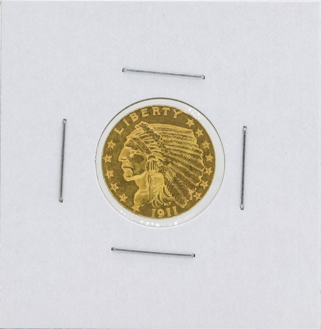 One 1911 $2 1/2 Indian Head Quarter Eagle Gold Coin.