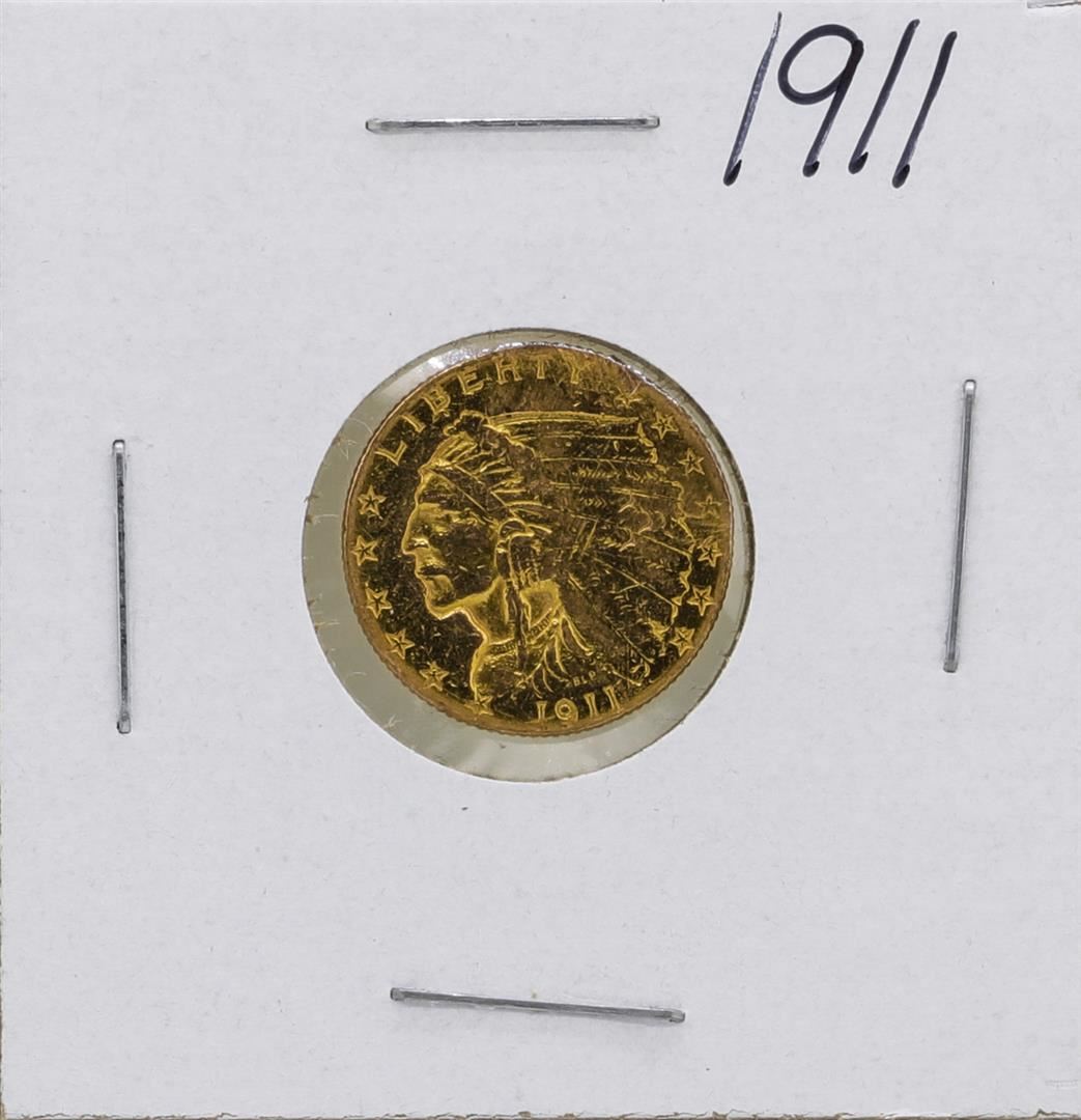 One 1911 $2 1/2 Indian Head Quarter Eagle Gold Coin.