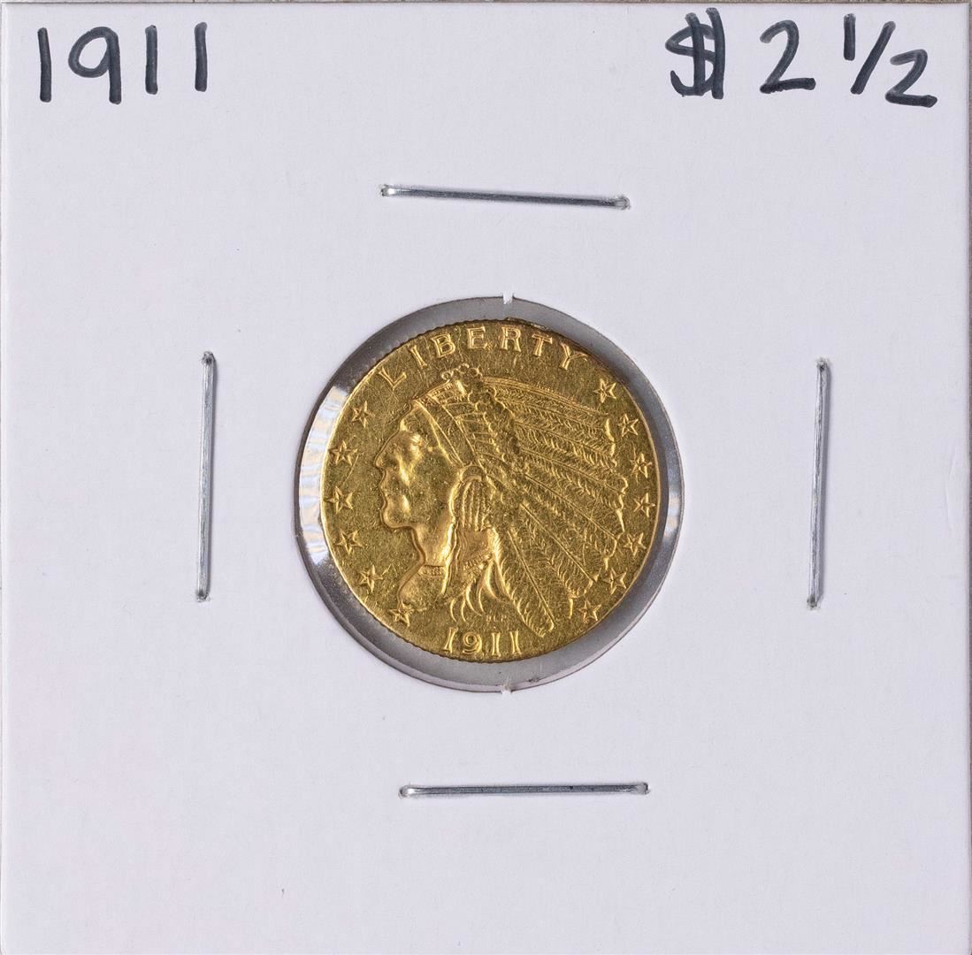 One 1911 $2 1/2 Indian Head Quarter Eagle Gold Coin.
