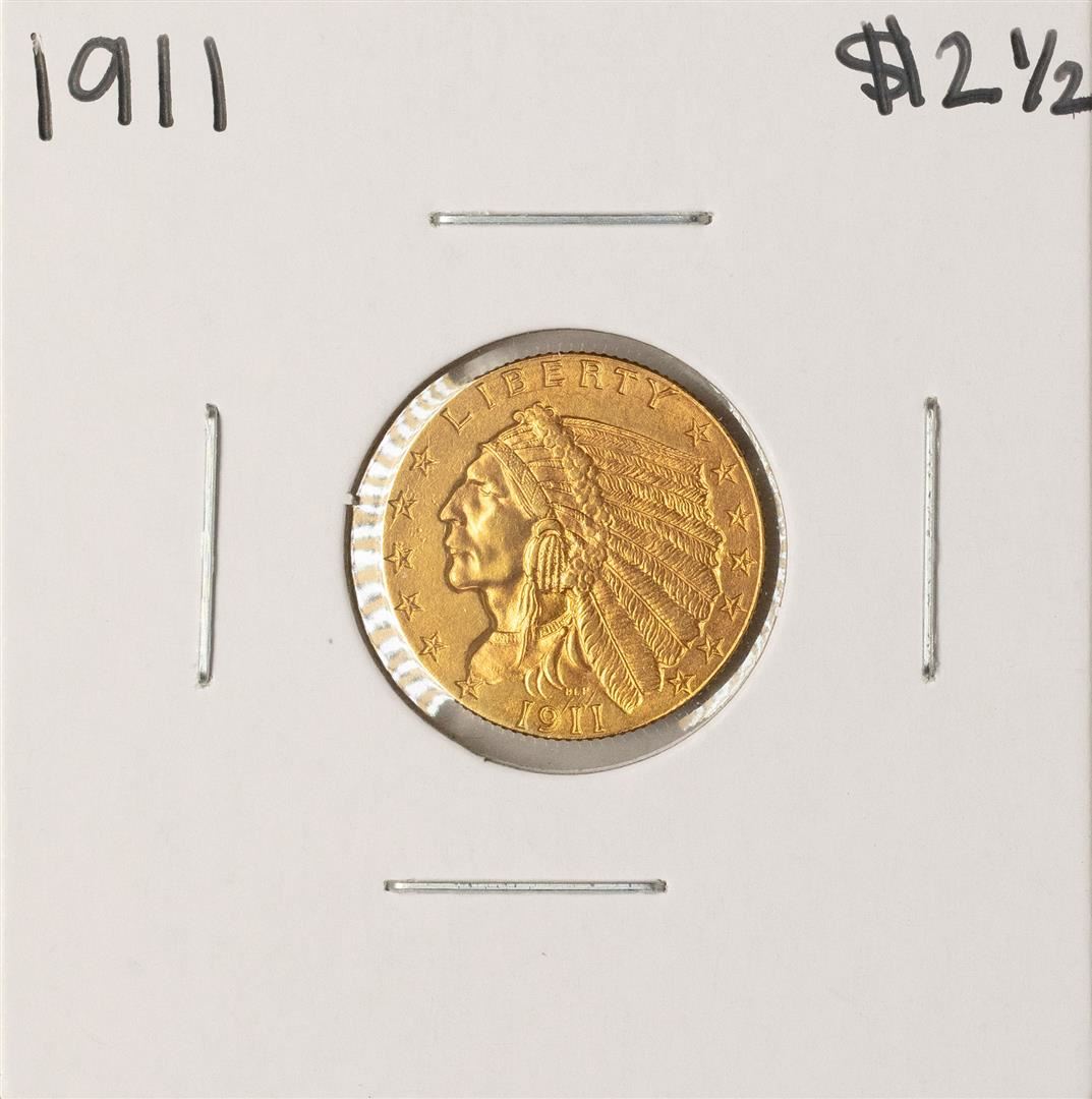 One 1911 $2 1/2 Indian Head Quarter Eagle Gold Coin.