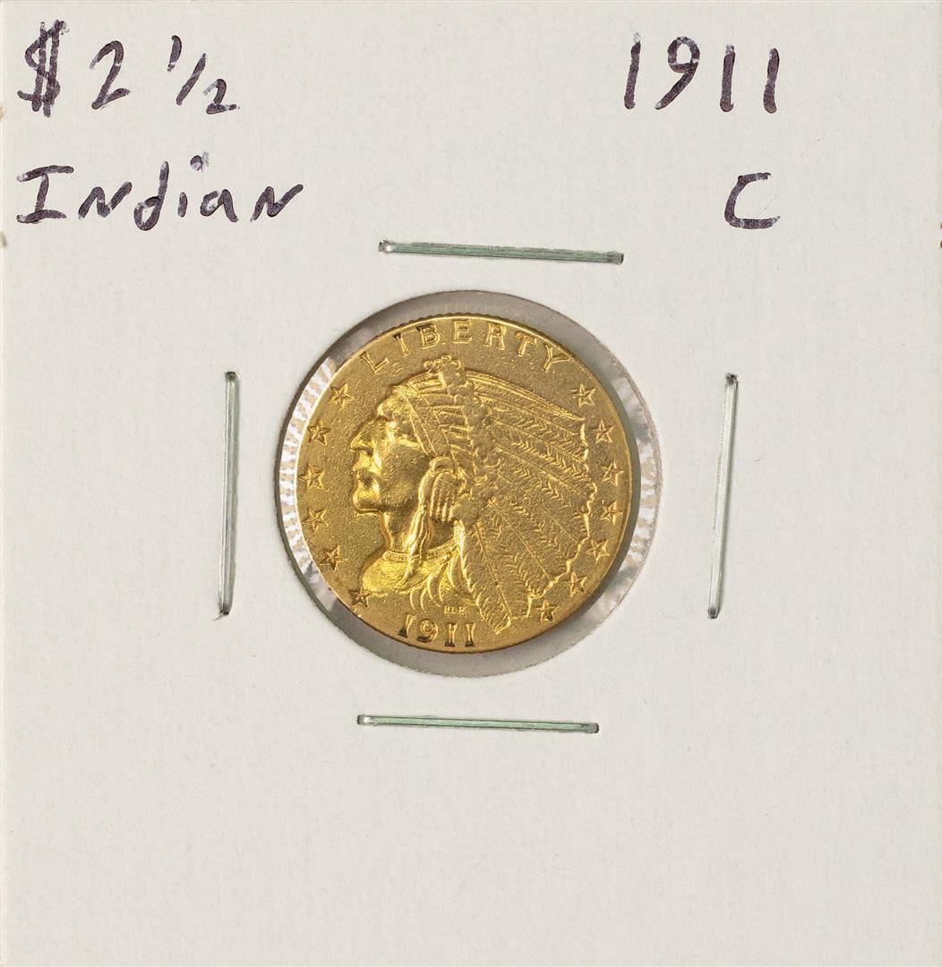 One 1911 $2 1/2 Indian Head Quarter Eagle Gold Coin.