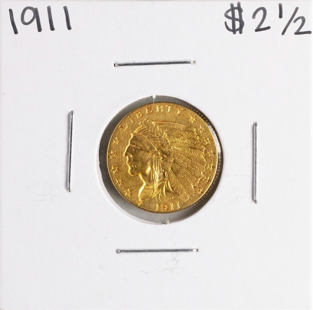 One 1911 $2 1/2 Indian Head Quarter Eagle Gold Coin.