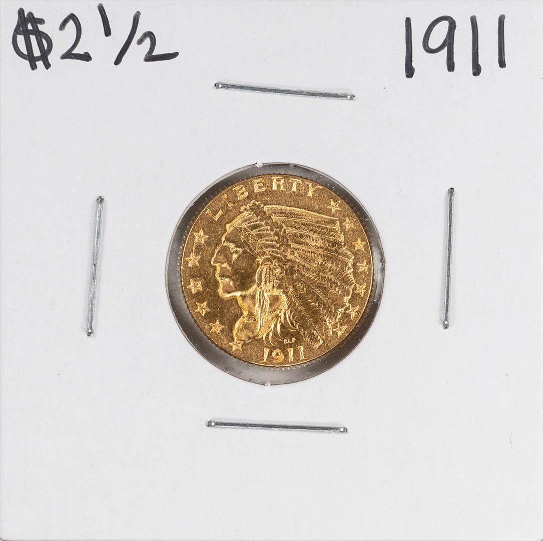 One 1911 $2 1/2 Indian Head Quarter Eagle Gold Coin.