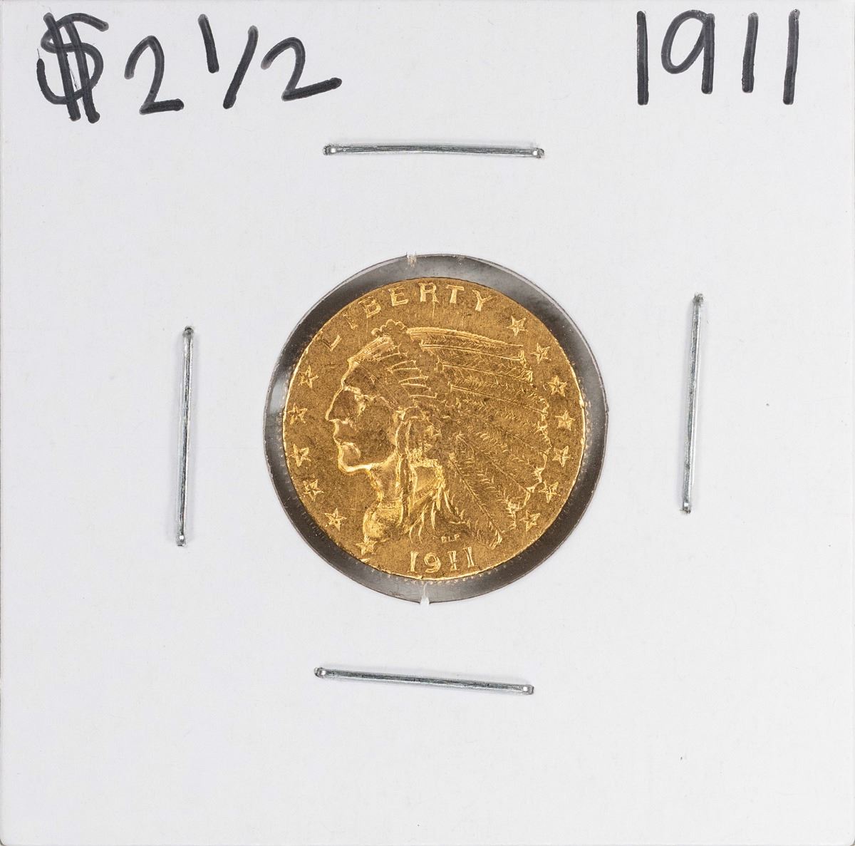 One 1911 $2 1/2 Indian Head Quarter Eagle Gold Coin.