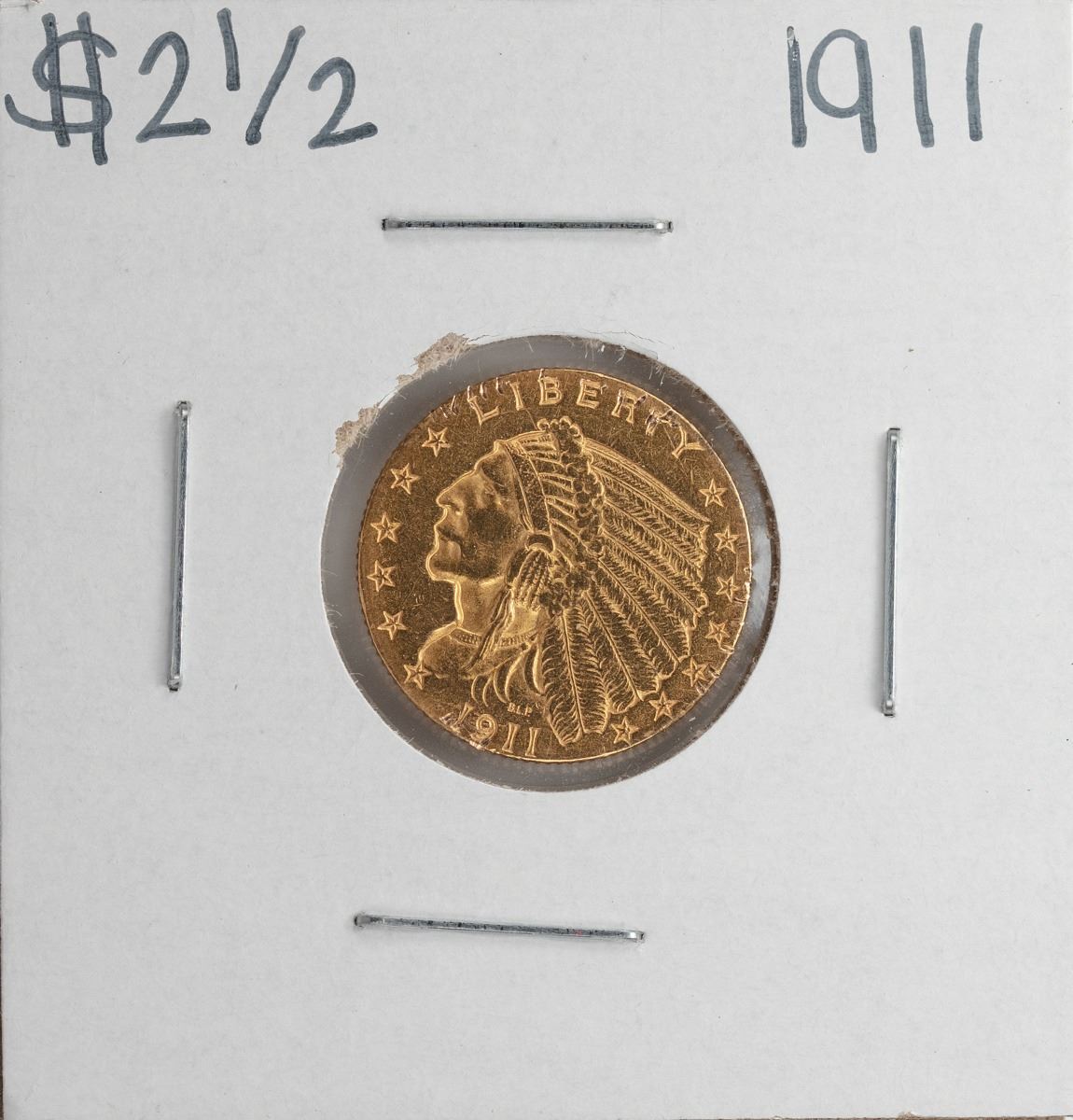 One 1911 $2 1/2 Indian Head Quarter Eagle Gold Coin.