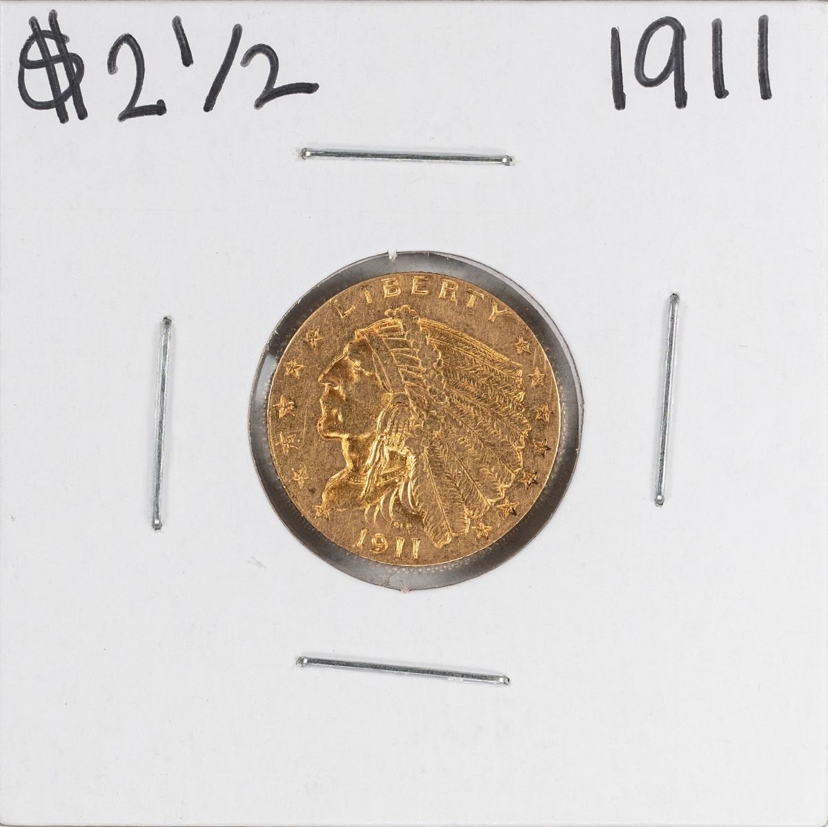 One 1911 $2 1/2 Indian Head Quarter Eagle Gold Coin.