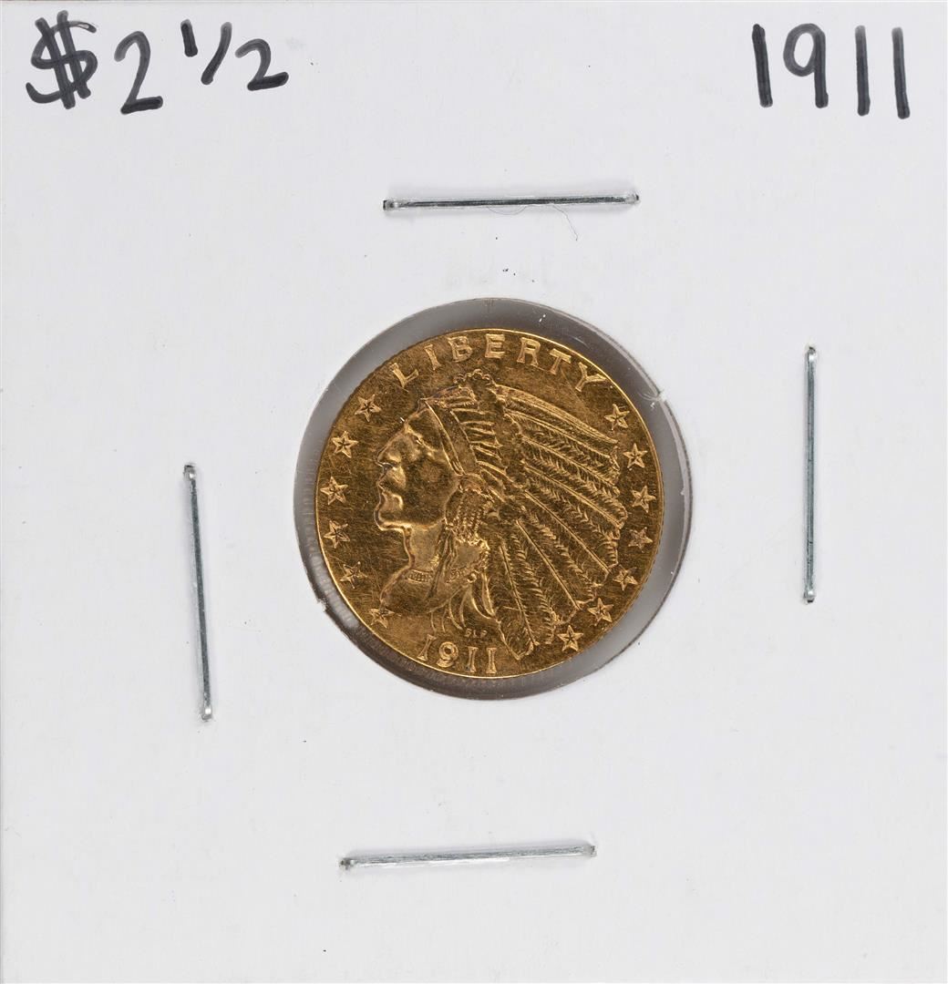 One 1911 $2 1/2 Indian Head Quarter Eagle Gold Coin.