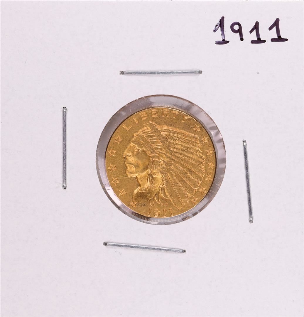 One 1911 $2 1/2 Indian Head Quarter Eagle Gold Coin.