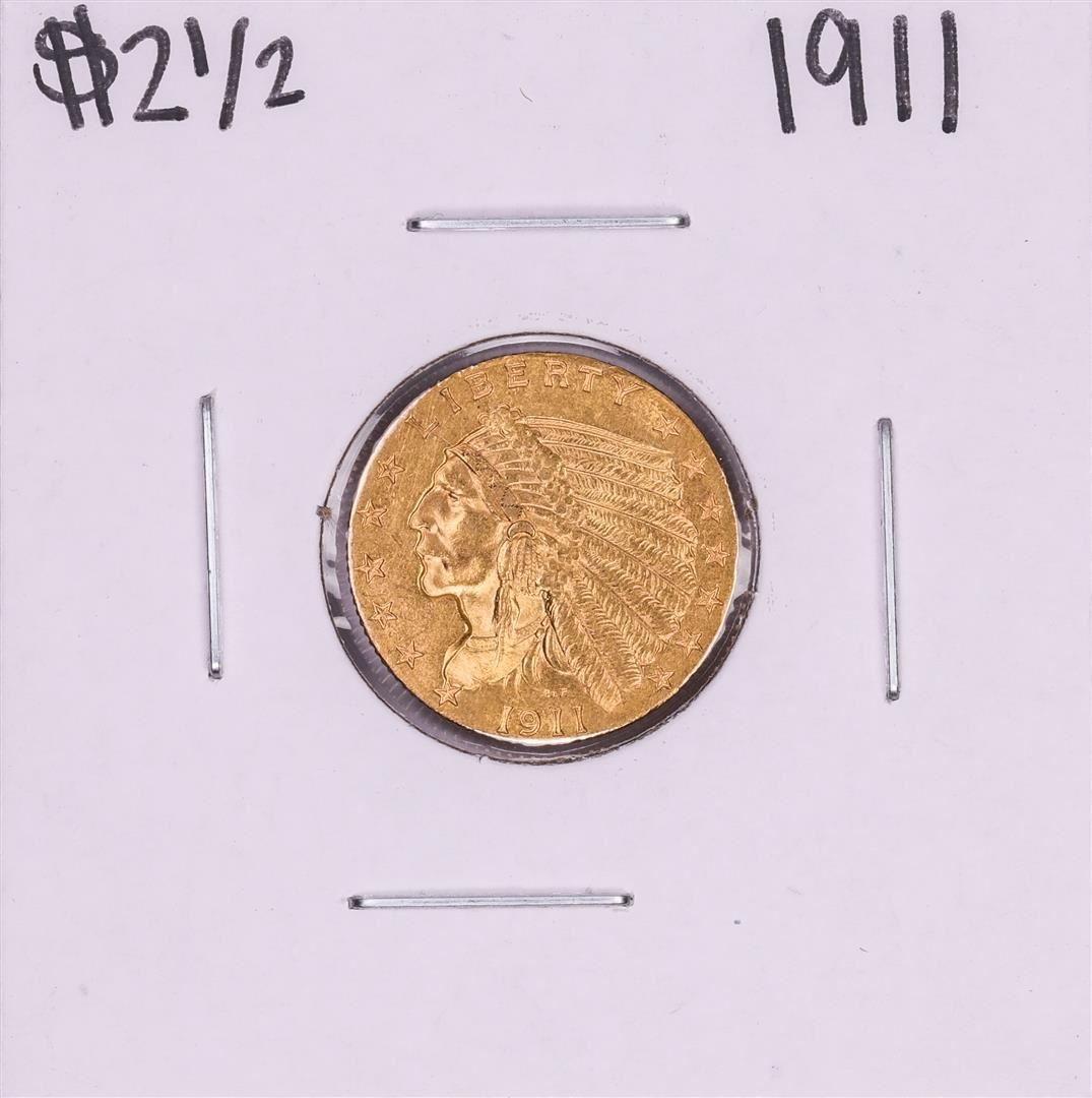 One 1911 $2 1/2 Indian Head Quarter Eagle Gold Coin.