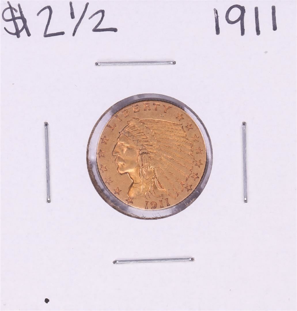 One 1911 $2 1/2 Indian Head Quarter Eagle Gold Coin.