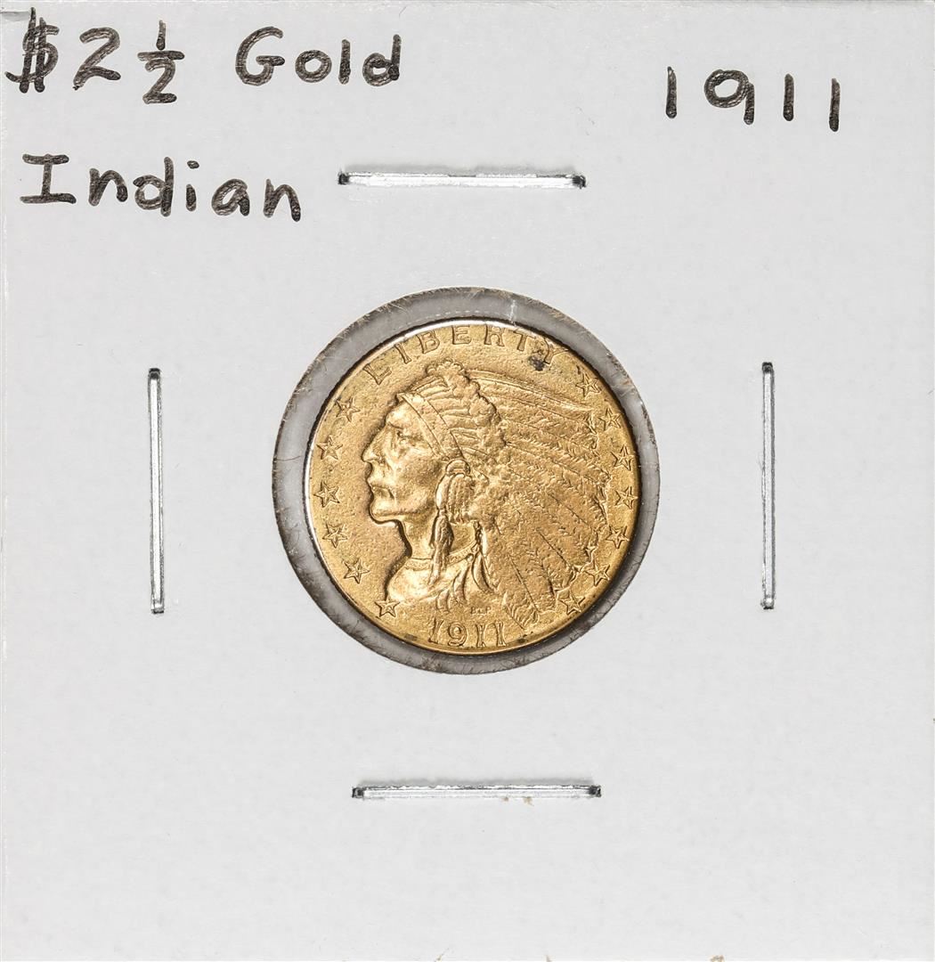 One 1911 $2 1/2 Indian Head Quarter Eagle Gold Coin.