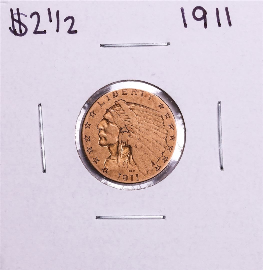One 1911 $2 1/2 Indian Head Quarter Eagle Gold Coin.
