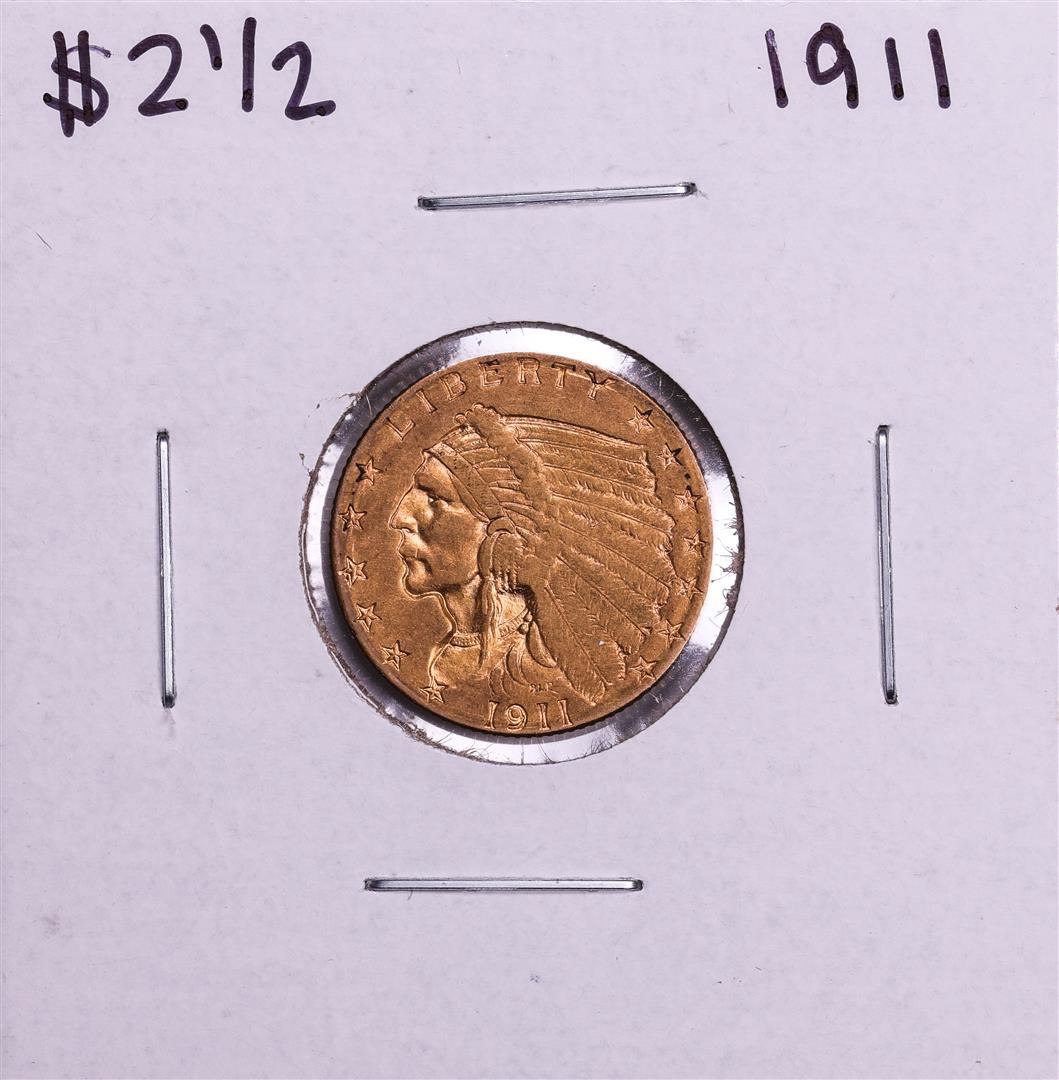 One 1911 $2 1/2 Indian Head Quarter Eagle Gold Coin.