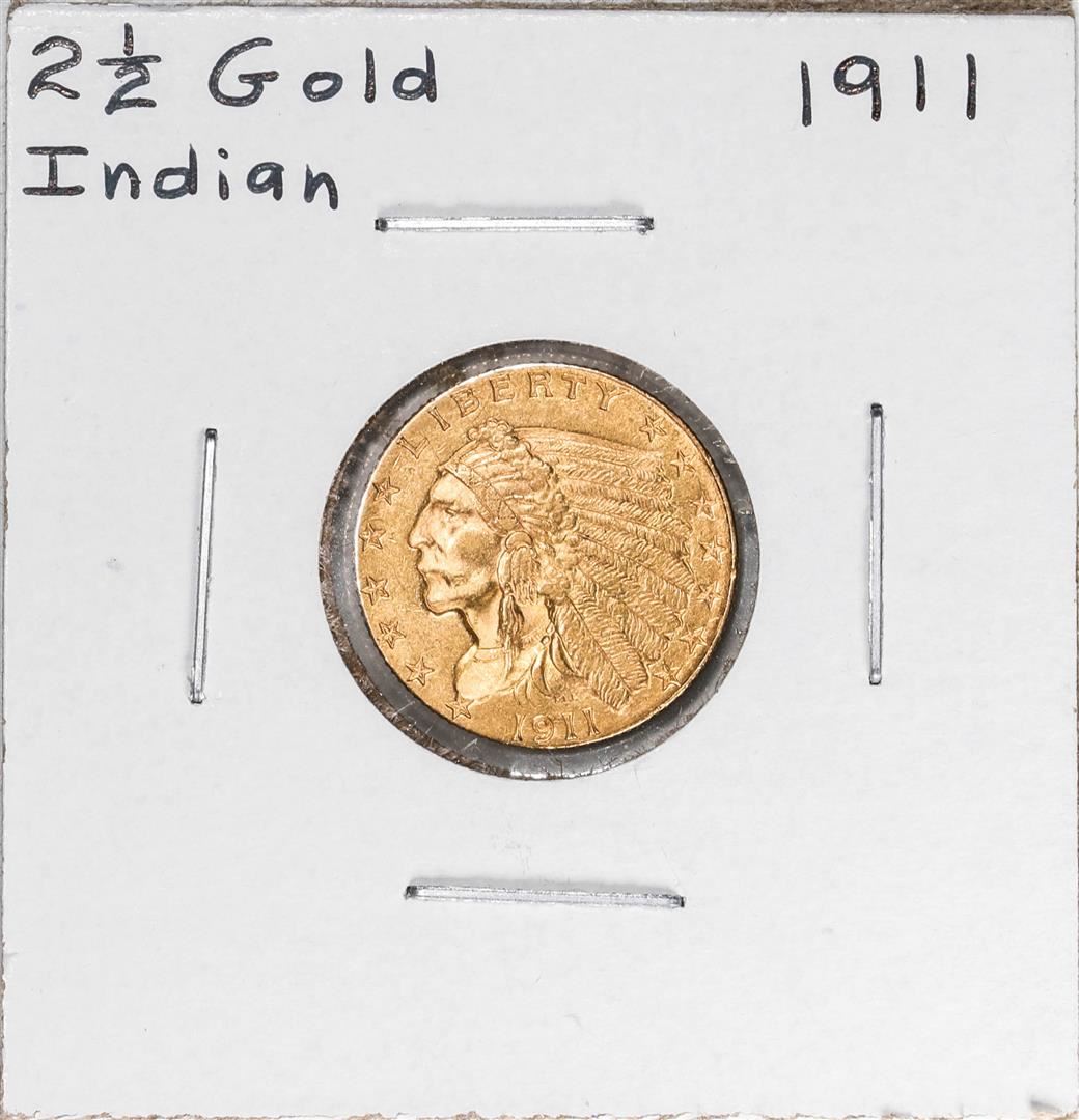 One 1911 $2 1/2 Indian Head Quarter Eagle Gold Coin.