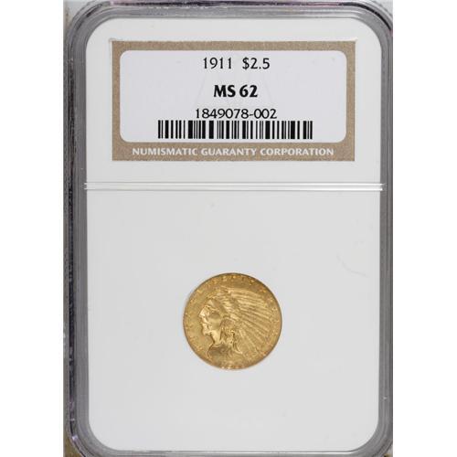 1911 $2 1/2 MS62 NGC. NGC Census: (2661/2106). PCG