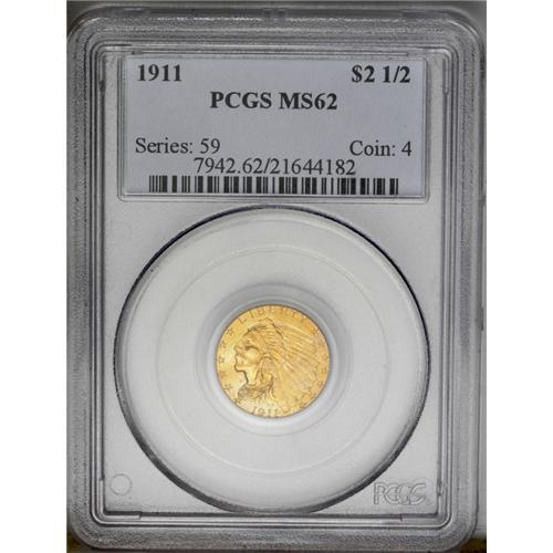 1911 $2 1/2 MS62 PCGS. With a mintage of 704,000 piece