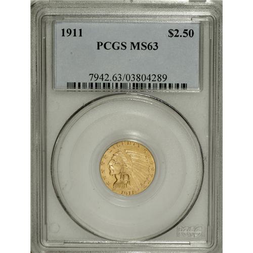 1911 $2 1/2 MS63 PCGS. PCGS Population (820/576).