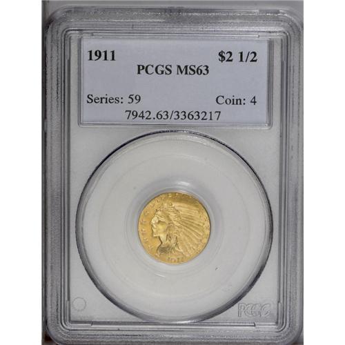 1911 $2 1/2 MS63 PCGS. Quite lustrous with small, scat