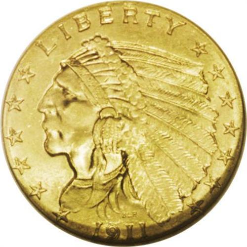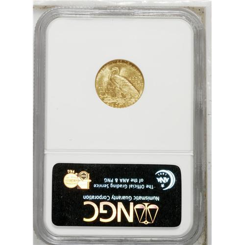 <B>1911<$2 1/2> MS64 NGC.</B></I> Both sides of this pleasing near-Gem are sharply detailed in all areas. Indian Head quarter eagles are often difficult to find in this condition because of their incuse design. This is a lovely piece that must look very nearly as it did in the year of issue. A slightly granular, yellow-gold coin for the discerning type collector.